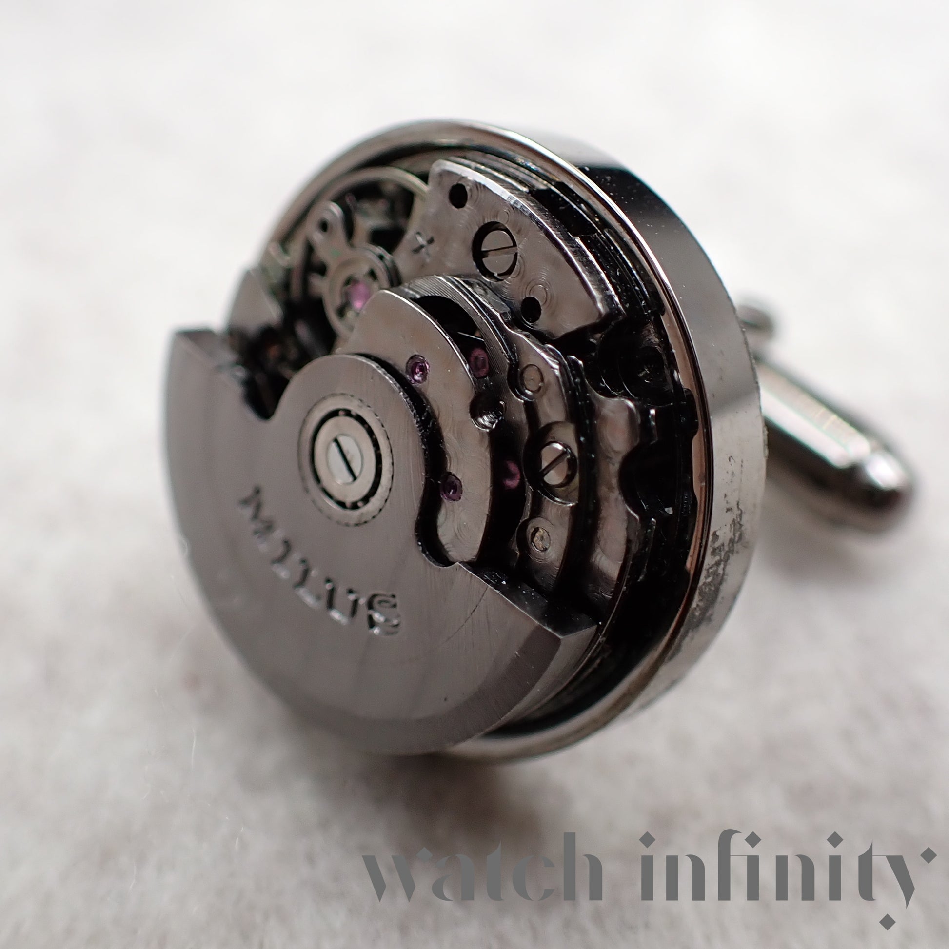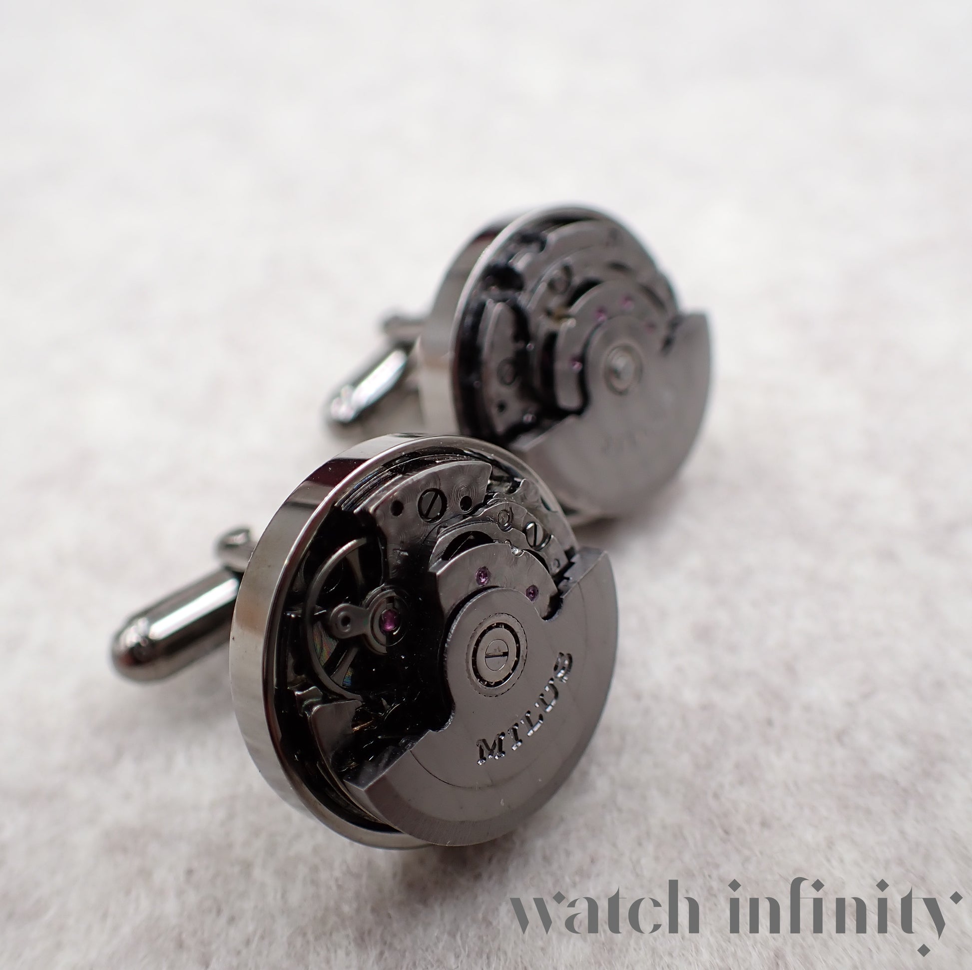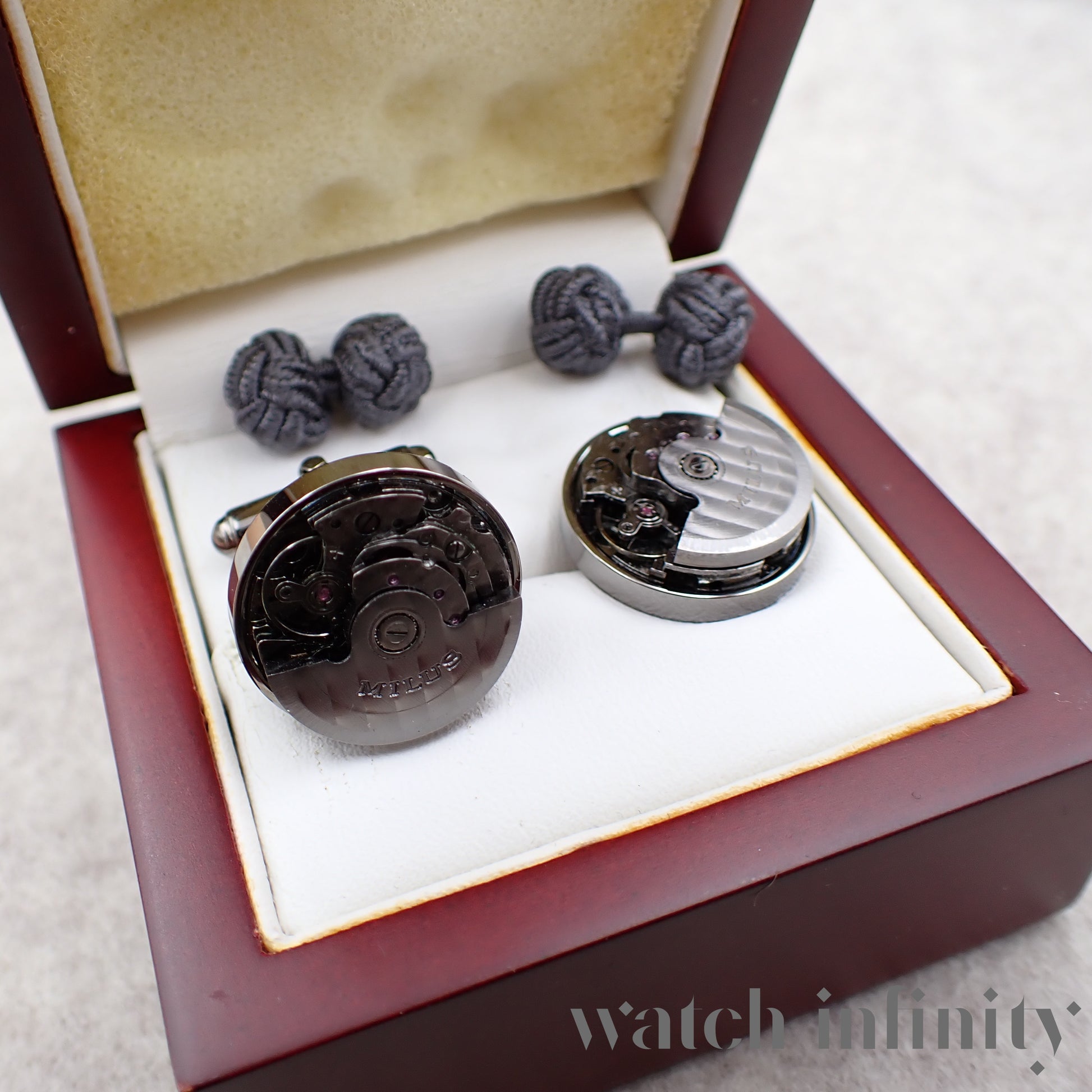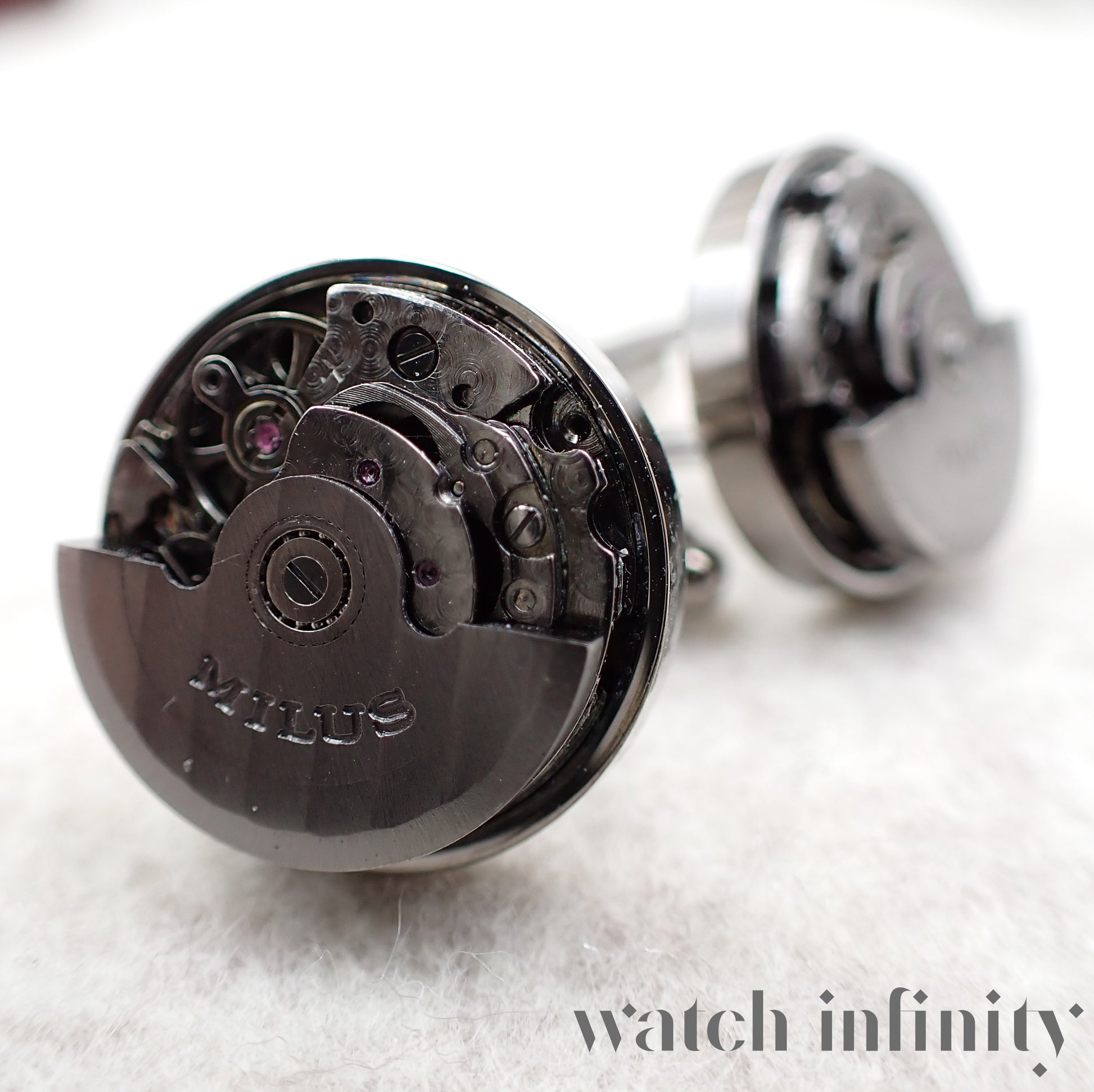 Milus, paire de boutons de manchette "calibre" avec masse oscillante tournante.